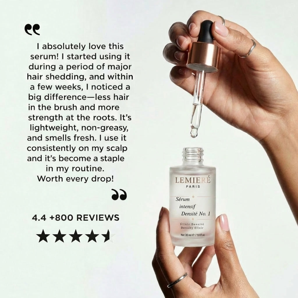 I tried everything — thickening shampoos, scalp oils, hair vitamins, even expensive salon treatments — but nothing actually changed the thinning. After six weeks with LEMIERÉ, my part didn't look as wide anymore. By the second month my crown looked fuller. It genuinely gave me my confidence back.